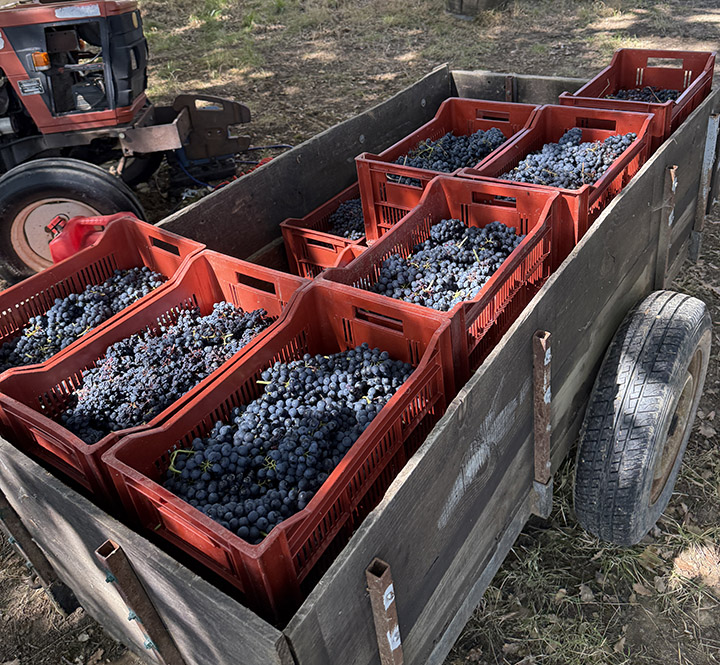 Our first morning started at 8 a.m. with fresh bread, local honey, and organic coffee before walking to the first harvest site where we picked Syrah and Abouriou, a variety native to the Lot-et-Garonne. With shears in hand, we picked mainly shriveled grape clusters, but included some plump grapes, as well — each necessary for carbonic maceration, a pre-fermentation technique for extracting color and tannin. Time flew by as we crouched between rows of vines, enjoying the beaming sun, fresh air, and smell of fresh dew on the grass.