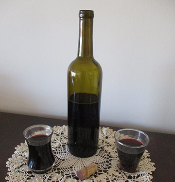 Occasionally, Grampa would pour a bottle of whiskey into one of the barrels to boost the alcohol content of that barrel. Hydrometers were nowhere to be found . . . to check the alcohol level, Grampa would put a shot glass of wine into the freezer and let it sit for a couple of days. Whatever was not frozen would be pure alcohol. From what I remember, half the glass would remain unfrozen. In total, Grampa made 300 gallons (1,135 L) a year, the same way he learned how to make it as a youngster in Italy. Ah, Salud!