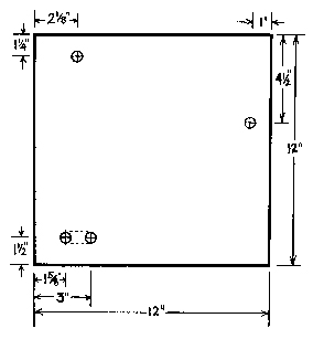 - Drill 4 holes, 7/16 inches in diameter, as shown.