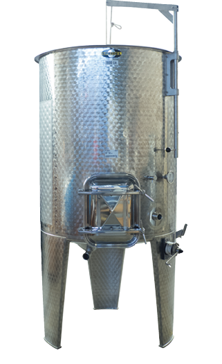 Big batch winemakers will appreciate the features of this variable-capacity 178-gal. (675-L ) tank. Built in Germany by Speidel, this tank boasts a 2R rated interior surface, which resists tartrate buildup, which means you can clean your tank with cold water and no harsh chemicals after cold stabilization and be done. Speidel uses robotic arm laser welders to create their stainless-to-stainless junctions as compared to a traditional weld, which greatly reduces any chance for residual sediment to hang around in the tank that could encourage spoilage organisms. Comes outfitted with conical, pocketed bottoms for total drainage, which maximizes product yield at rackings and makes cleaning easy. The floating lid utilizes a heavy duty rubber gasket, which is thicker than traditional clear vinyl gaskets, and provides a better seal with the tank wall for increased protection of your wine. It is configured for use with Tri-Clamp (TC) style valves and fittings. Available from MoreWine! by special order (pre-paid).