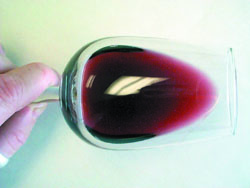 Color and Hue: Assess the wine’s color and hue by tilting the glass over a white background. Don’t hold the glass up and try to peer through the wine. By tilting the glass you’ll expose a thin layer of wine for inspection, and holding it over a white background will give you an accurate idea of the true color.
