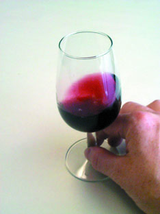 Red wines have several different color compounds that contribute to its hue. However, when a red wine is young, some of these compounds are actually blue. We learned from finger painting in kindergarten that red and blue mixed together make purple (the perfect color for mommy’s hair). Therefore, very young red wines, such as Beaujolais Nouveau or any red under two years of age, have a distinctive purple hue. As the wine ages, the blue compounds gradually turn red, and the wine goes from purple to true red, and eventually to a more brick-red color. Again, this is a sign of the wine evolving, not spoiling.