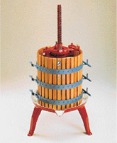 The wine press (often called a basket or vertical press) is used to apply pressure on crushed grapes to extract juice. The basket press is the most popular type because it is efficient and well-priced. This press consists of a cylindrical hardwood basket to hold the crushed grapes, as well as a ratchet mechanism and hardwood blocks for exerting pressure. Mechanical bladder presses are also available and use an inflatable device to press out juice.
