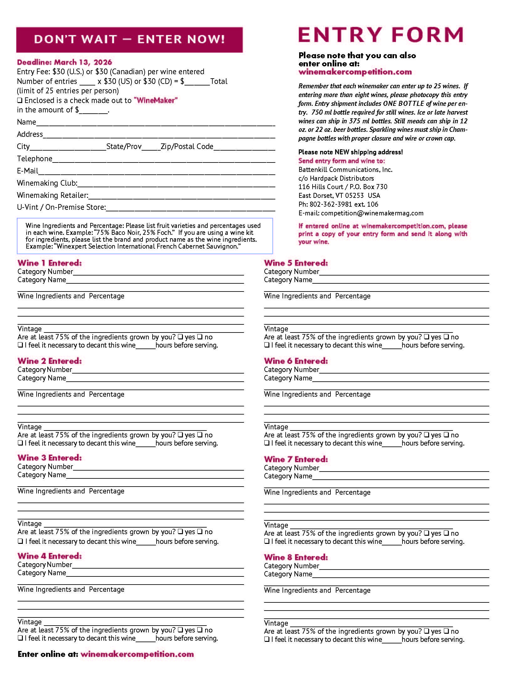 ENTER YOUR BEST HOMEMADE WINES IN THE WORLD’S LARGEST COMPETITION FOR HOBBY WINEMAKERS!