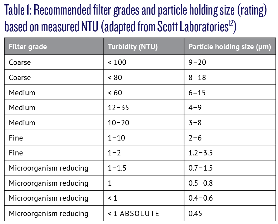 12 Scott Laboratories. n.d. Filter Grade Selection by Measuring Turbidity. https://shop.scottlab.com/content/files/documents/filtration/filter-grade-selection.pdf
