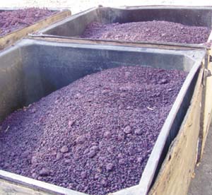 Pomace is the general term for any solid material — such as the skins, pulp and seeds — leftover after wine or juice has been made. Here